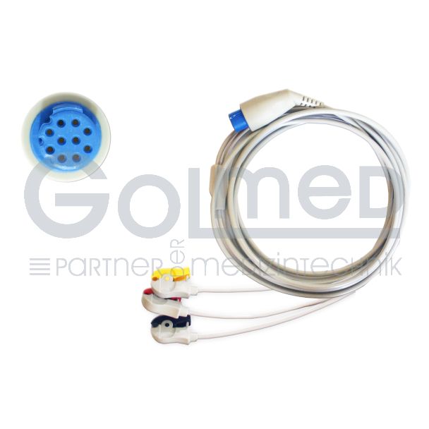 3-adriges EKG-Komplettkabel mit Klammern - zu GE Datex-Ohmeda