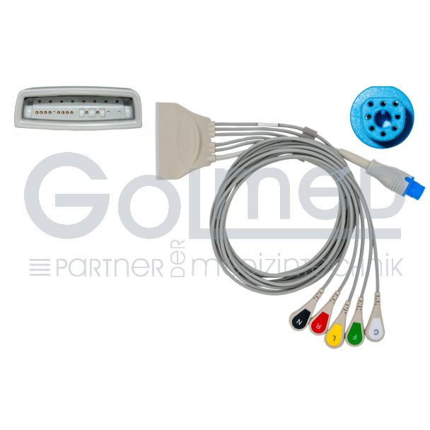 5-adr. Telemetrie-EKG-Patientenkabel inkl. SpO2-Konnektor mit Druckknopf, zu Philips HP