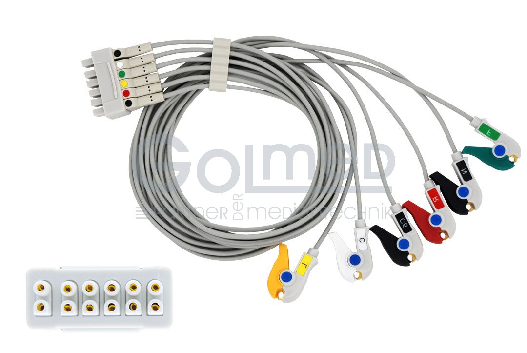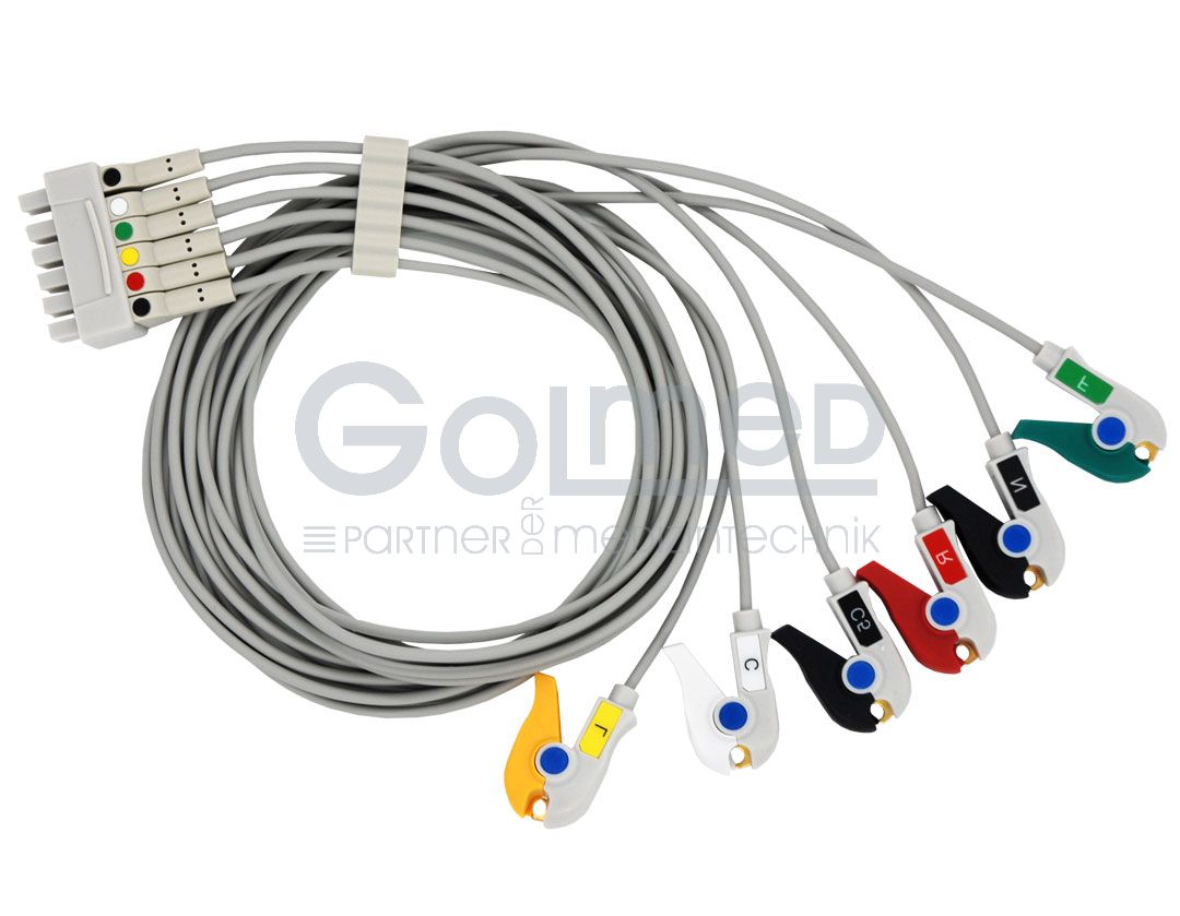 6-adrige EKG-Patientenleitung mit Klammern - zu GE-Marquette